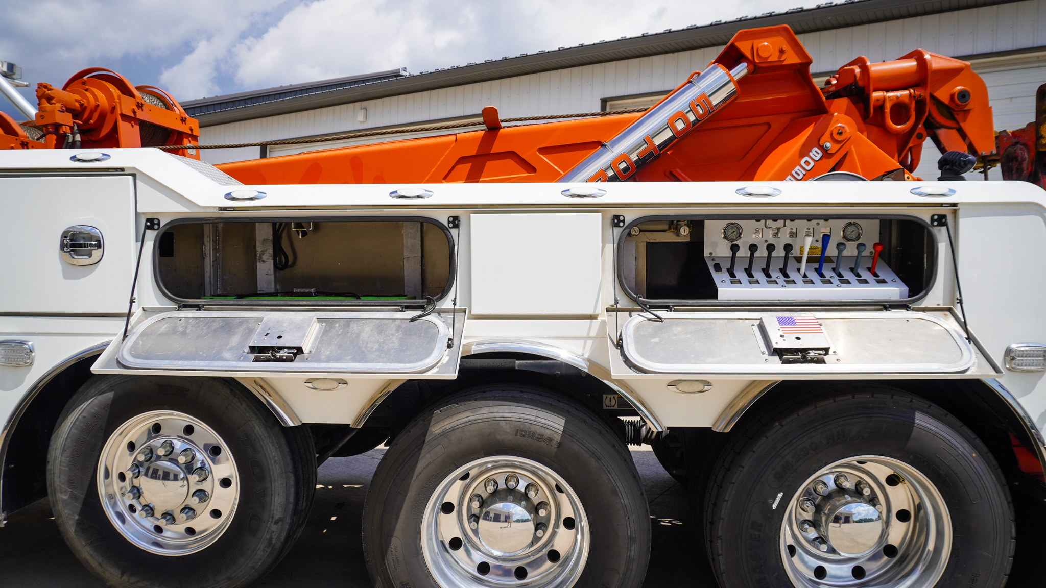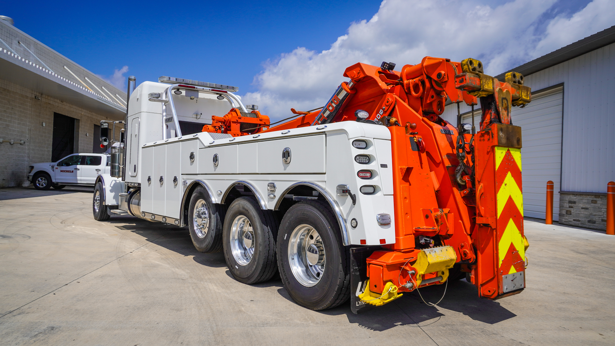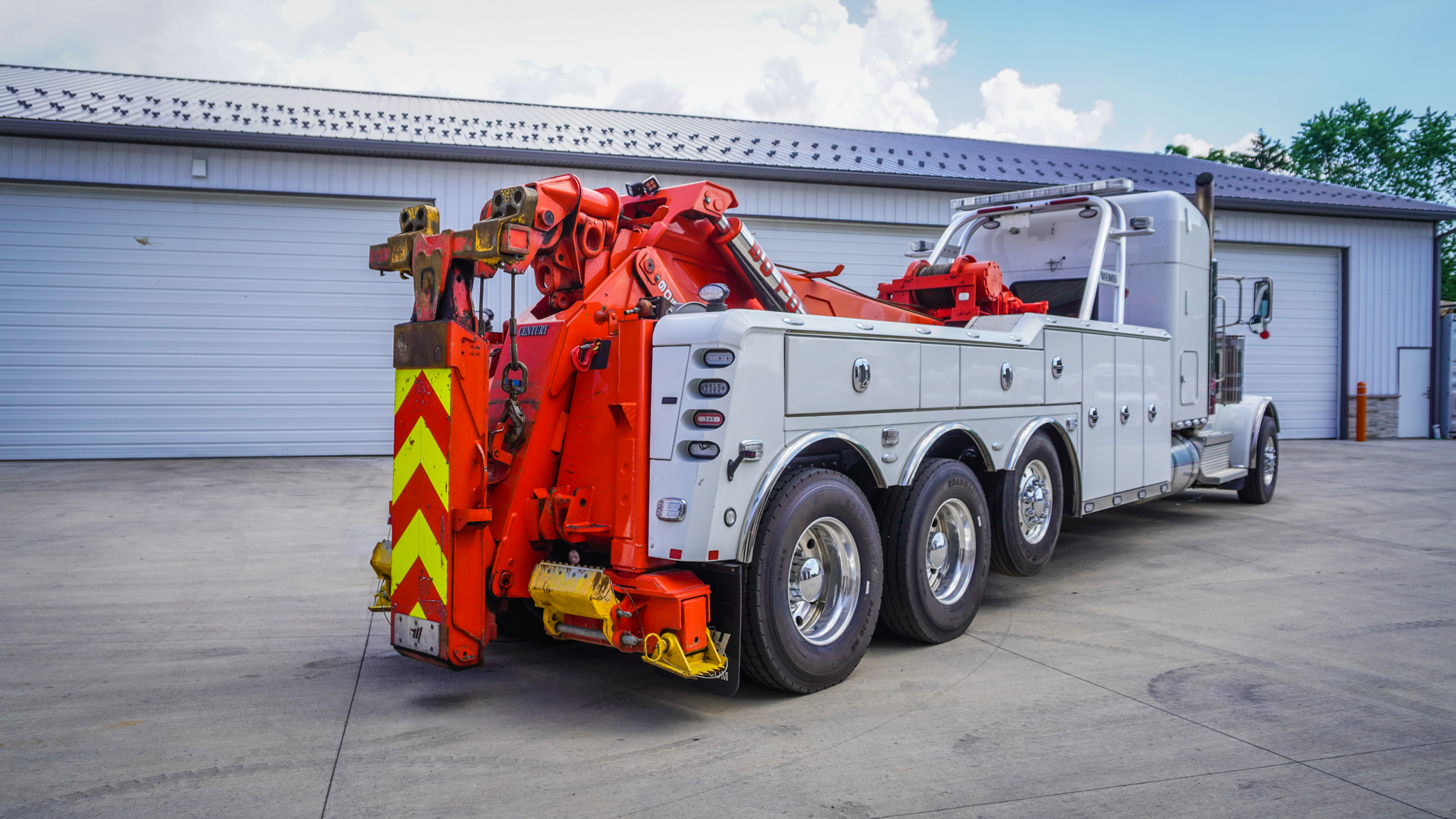 This 2022 Peterbilt 389 Pride & Class, with a Century 9055XL, is a single-owner truck and has been well cared for as a Southern truck. The addition of a 50-ton wrecker is significant for a balanced fleet. The 389 Pride & Class chassis with the spacious sleeper is rare to find. Equipped with an array of tools and technology, this truck is ready for any towing job.