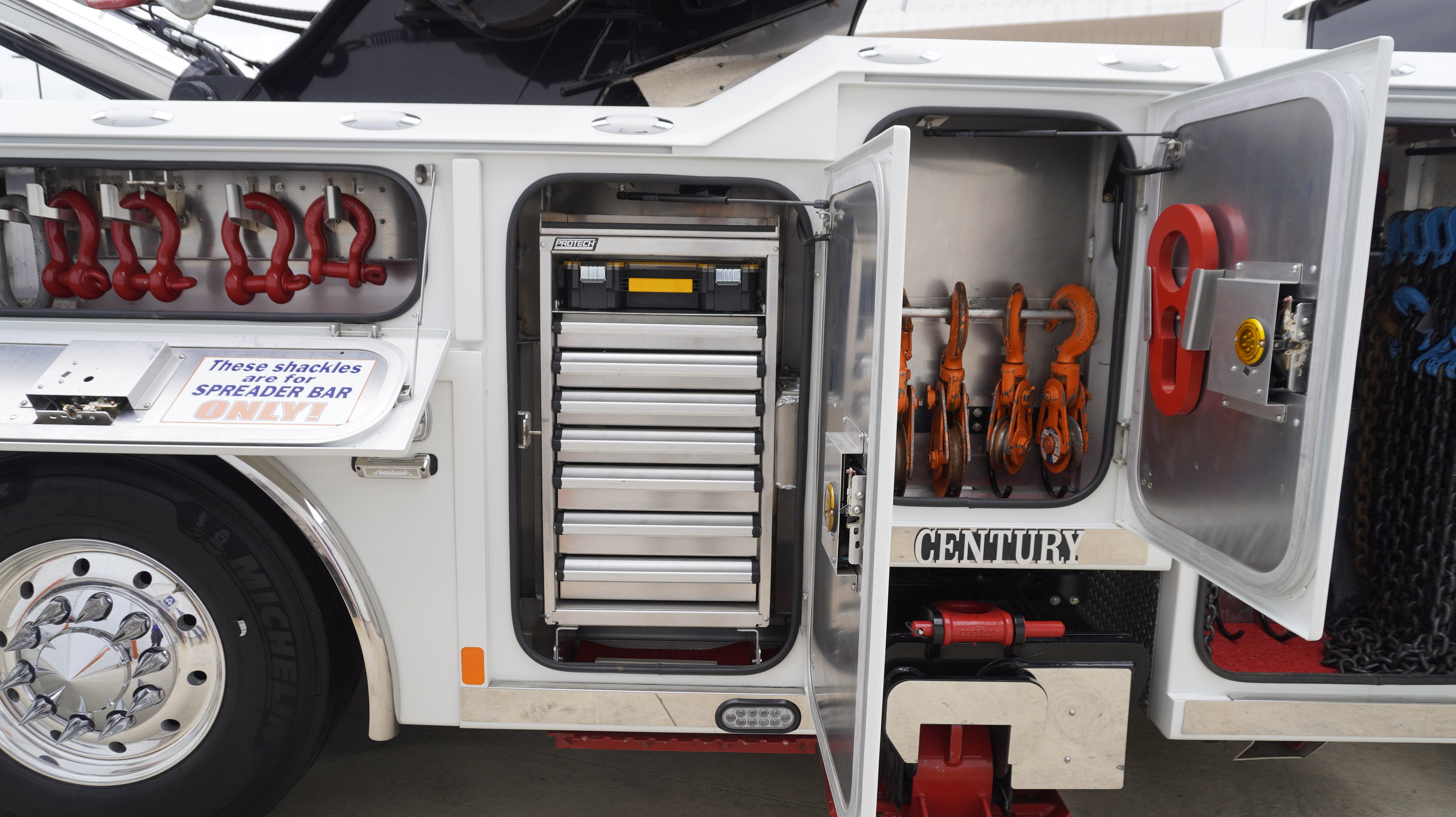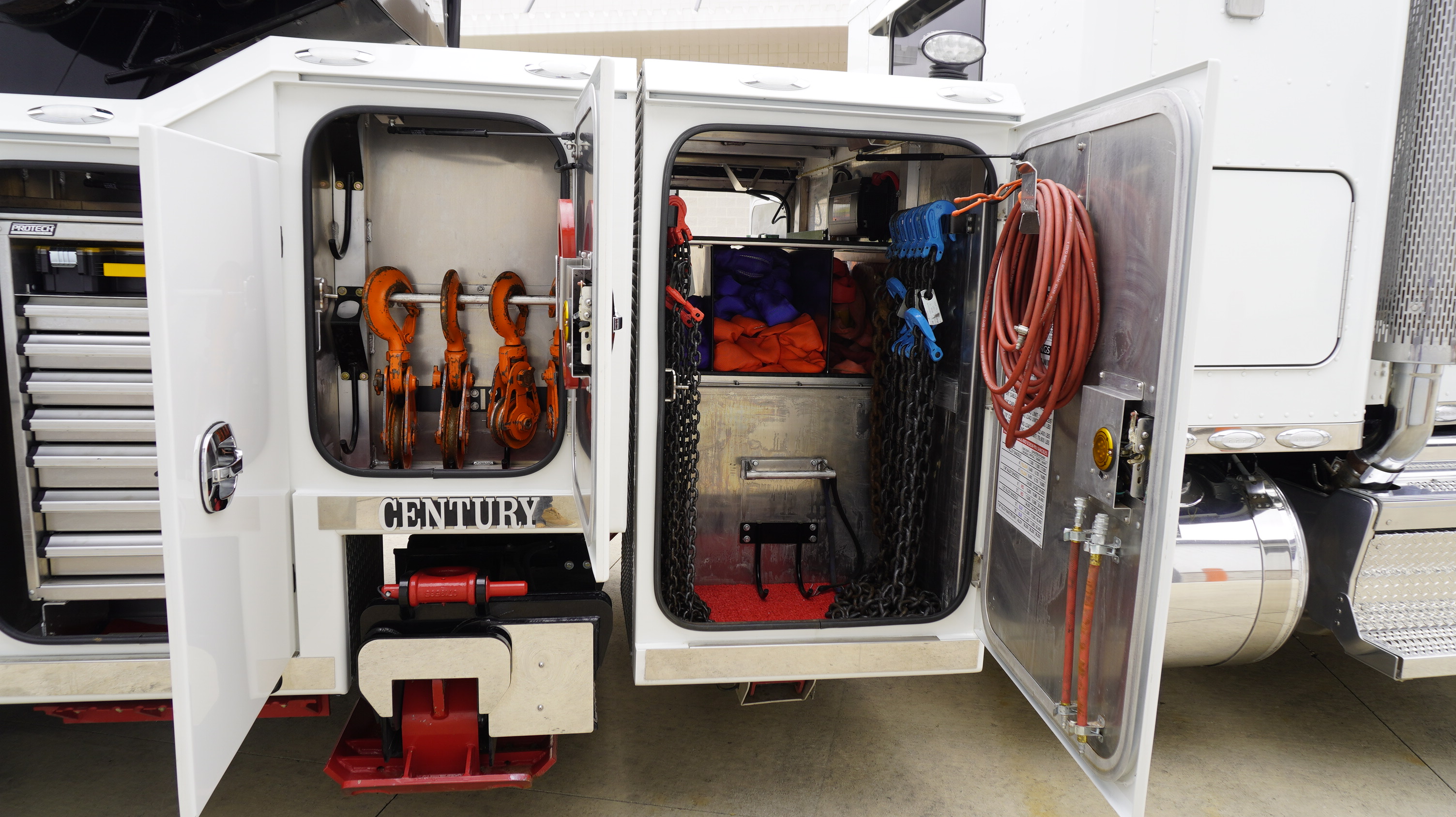 If you’re searching for a 50-ton rotator for sale, this 2023 Peterbilt 389S equipped with a Century 1150 rotator is built for the most demanding heavy-duty recovery operations.