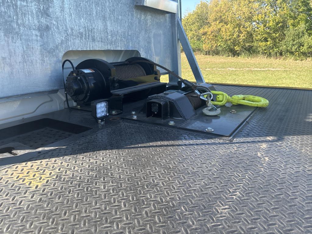 The 2025 International HV with a Century 20 Series LCG carrier body is a sturdy and versatile vehicle. With a 102" wide, 20,000lb planetary winch, an additional 8,000lb low-mount winch, extra chainlocks down the body's center, and extra lights on the pylon, it is well-equipped for various towing needs. Features like the locking chain rack and dual tool boxes provide added convenience and functionality. This vehicle offers a reliable and efficient solution for transporting and handling cargo with ease.
